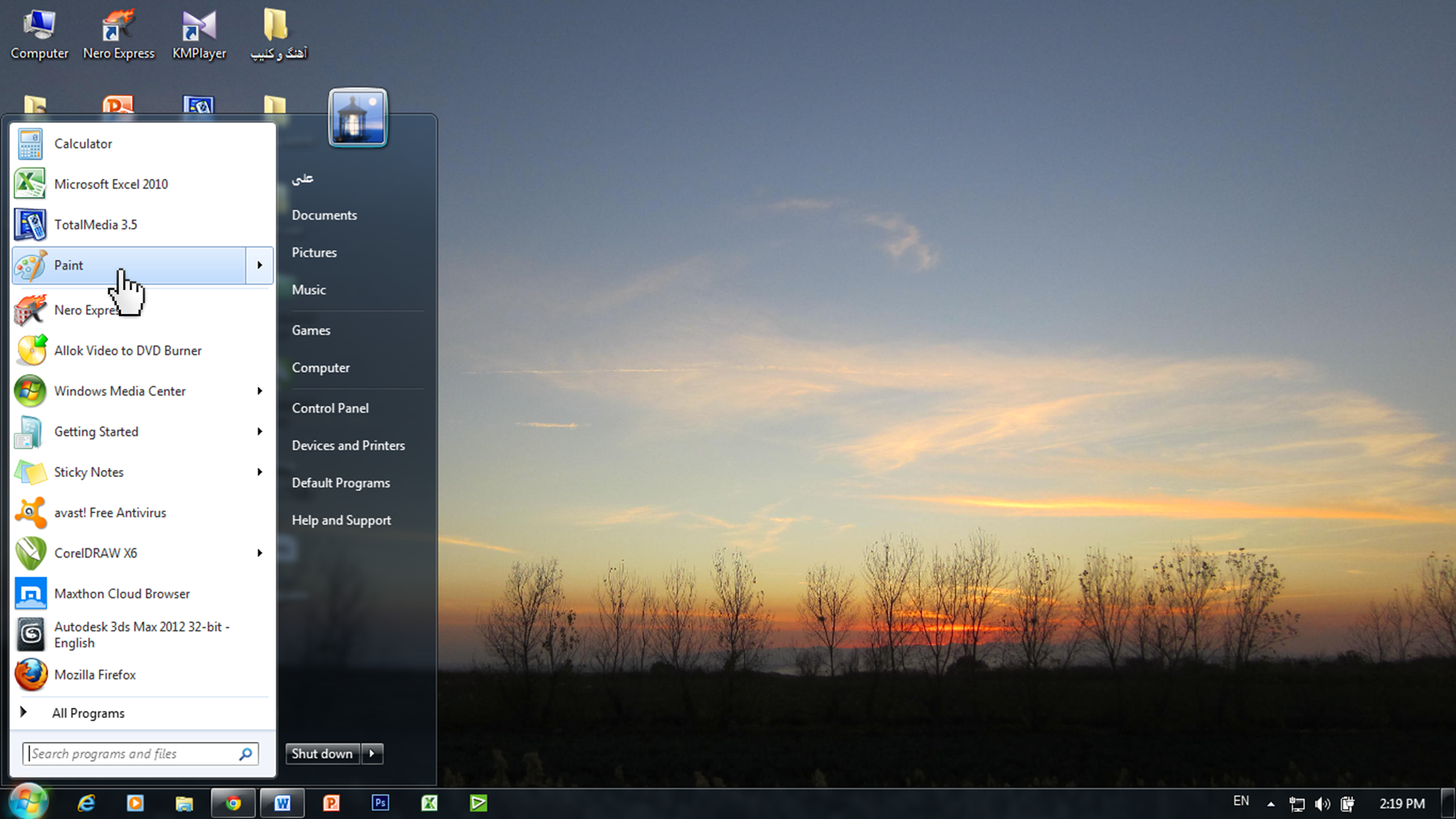 1- از مسیر زیر برنامه paint رو باز کنید.