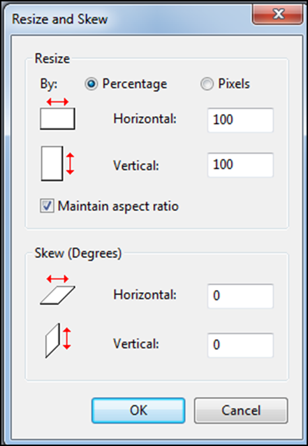 چیزی که ویندوز 7 اضافه تر دارد این است که امکان کوچک کردن عکس به صورت پیکسلی را هم میدهد، percentage همان حالت درصدی در ویندوز xpاست که توضیح دادیم . pixels هم به صورت پیکسلی سایز را مشخص میکند. و یک گزینه دیگر هم maintain aspect radio است که اگر تیک داشته باشد اعداد horizontal و vertical قفل میشوند به هم یعنی اگر یکی از اعداد را وارد کنیم دومی خودکار به تناسب وارد می شود. در حالت درصد دقیقا همان عدد وارد شده برای یکی از گزینه های horizontal یا vertical برای دیگری هم در نظر گرفته می شود؛ و در حالت پیکسلی به تناسب، اگر تیک این گزینه را بردارید میتوانید در دو حالت درصدی و پیکسلی اعداد متفاوتی را به horizontal و verticalبدهید که این کار پیشنهاد نمیشود چون تصویر از یک طرف کشیده خواهد شد.